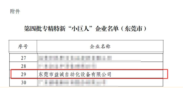 【喜報(bào)】熱烈祝賀益誠自動化榮獲國家級專精特新“小巨人”企業(yè)稱號!